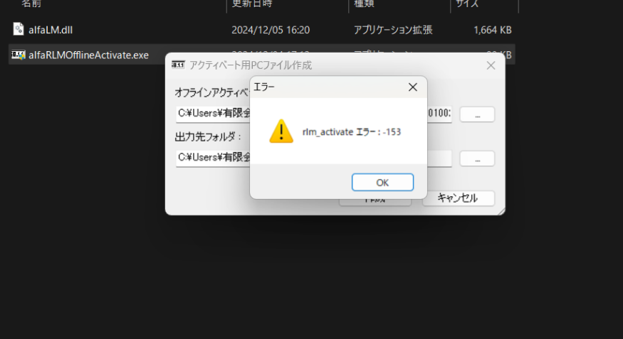 本ナレッジに添付のzipは alfaLM.dll を差し替えたオフラインアクティベート用ツールです。
