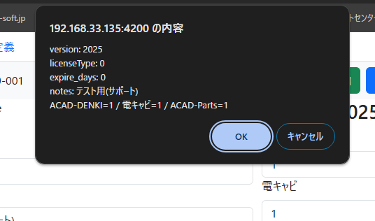 作成するライセンス内容の確認が表示されますので、[OK]を選択します。