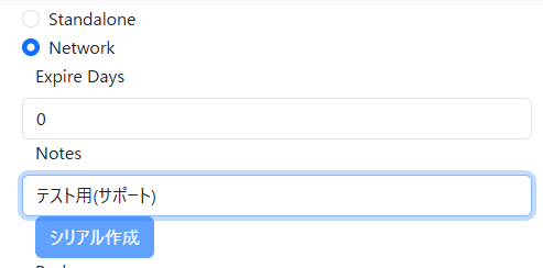 Notes欄に説明を入れます。※使用者、担当部署など。